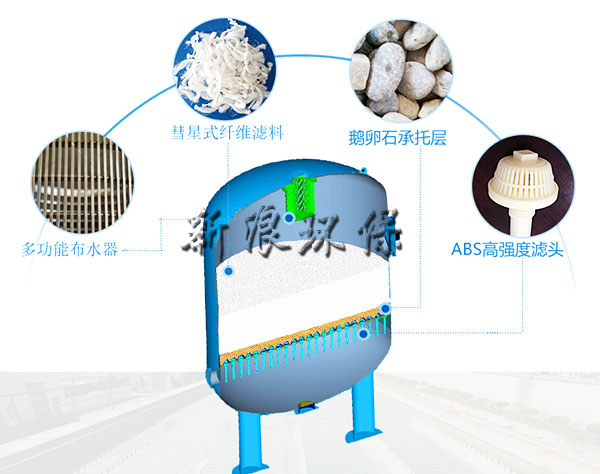 彗星纖維過濾器是以彗星式纖維濾料為核心的一種先進(jìn)的快速深層過濾技術(shù),它既有纖維濾料過濾精度高和截污量大的優(yōu)點(diǎn),又具有顆粒濾料反沖洗凈度高和耗水量少的優(yōu)點(diǎn),是目前上較先進(jìn)的深層過濾設(shè)備。