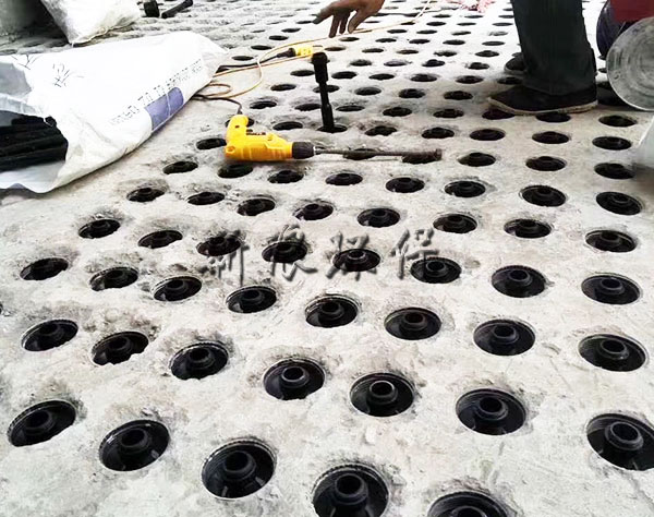這是因為整體澆筑ABS濾板立體綁扎鋼筋和池壁的預(yù)埋鋼筋左右能成網(wǎng)狀結(jié)構(gòu)和濾梁的預(yù)埋鋼筋上下形成立體結(jié)構(gòu),極大的提高了濾板整體荷載力和抗沖擊力。這是小塊預(yù)制濾板的預(yù)埋螺栓無法實現(xiàn)的。在曝氣生物濾池中濾料層的填充高度往往高達(dá)4m,因此荷載要高于給水中的濾池。